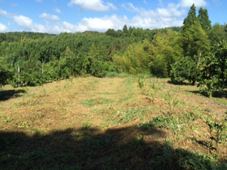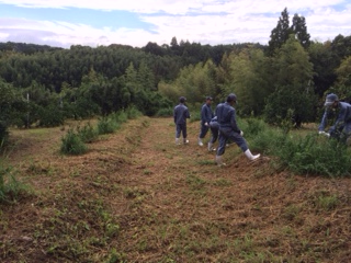 自分たちで定植したミカンなので思い入れもあり生徒達は額に汗して黙々と草を刈っていました。