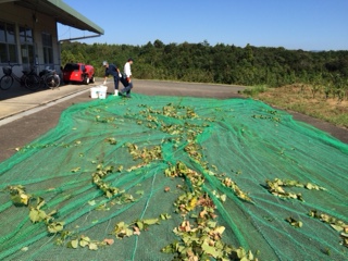 【本渡校舎】防鳥ネット片付け&栗選別(生物生産科3年)