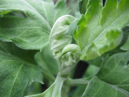 管理をしていると菊の花芽が出来ていたので生徒達に見せて、自分が管理している菊が「花芽」か「葉芽」を確認します。