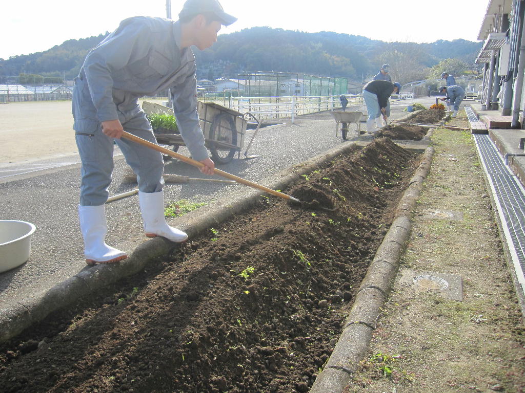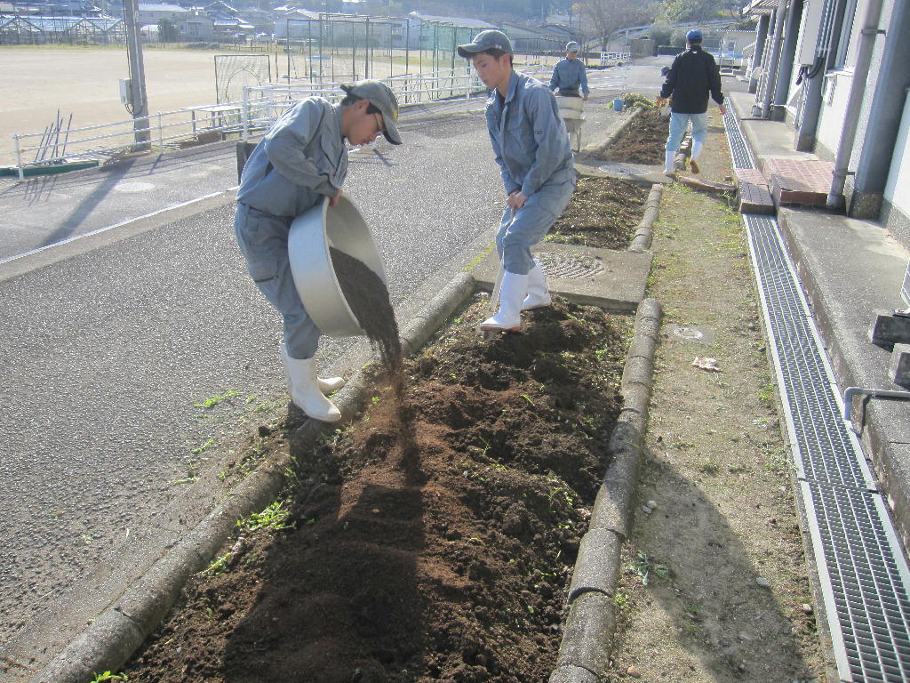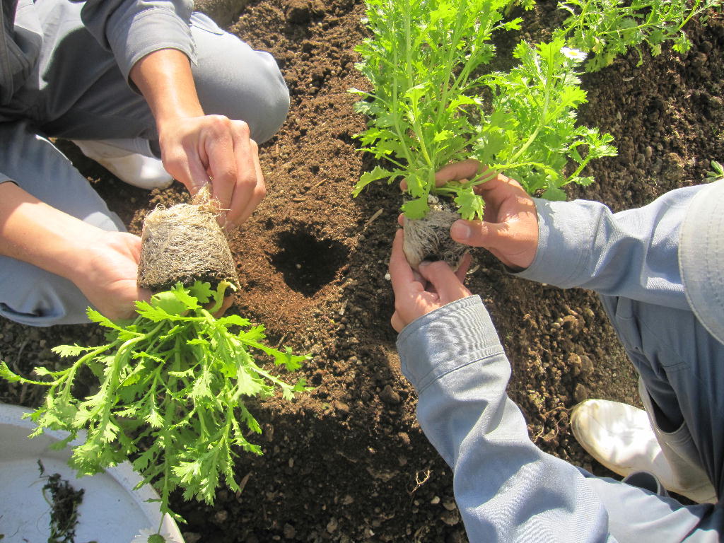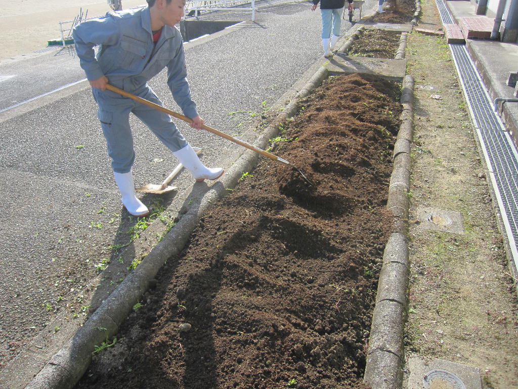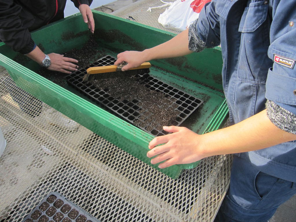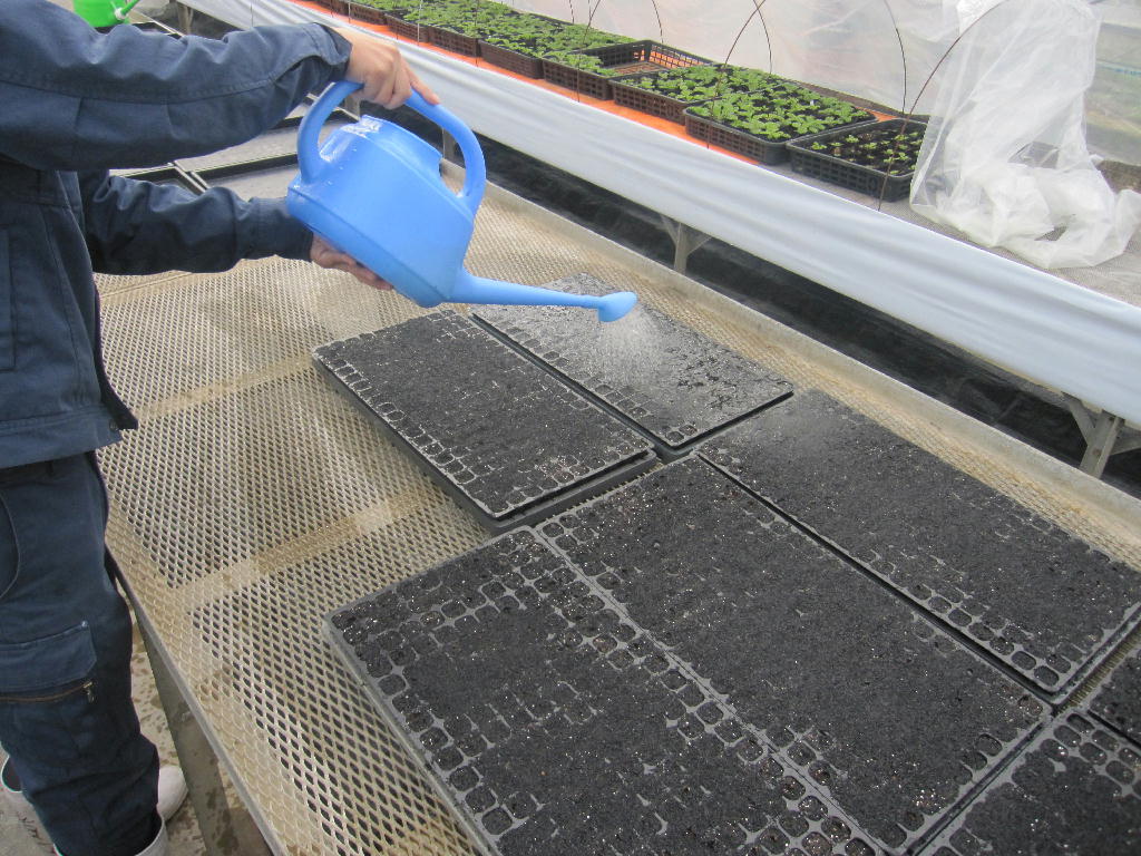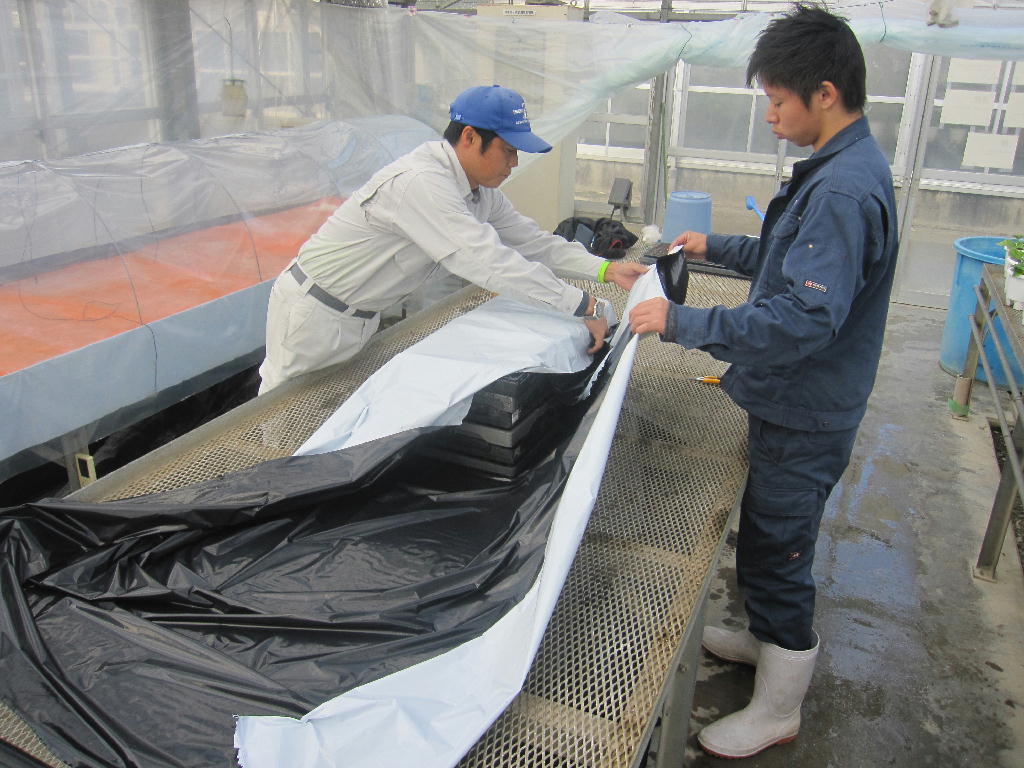 鉢もの栽培では、定植の前に土壌伝染性病害虫や雑草の種子を除去しとかないといけません。なので土壌の消毒を行います。土壌消毒には大きく分けて、熱処理と薬剤処理があり、本校では熱処理の中の蒸気消毒で土の温度が100℃で約1時間消毒した土を鉢替え用土として使用しています。
