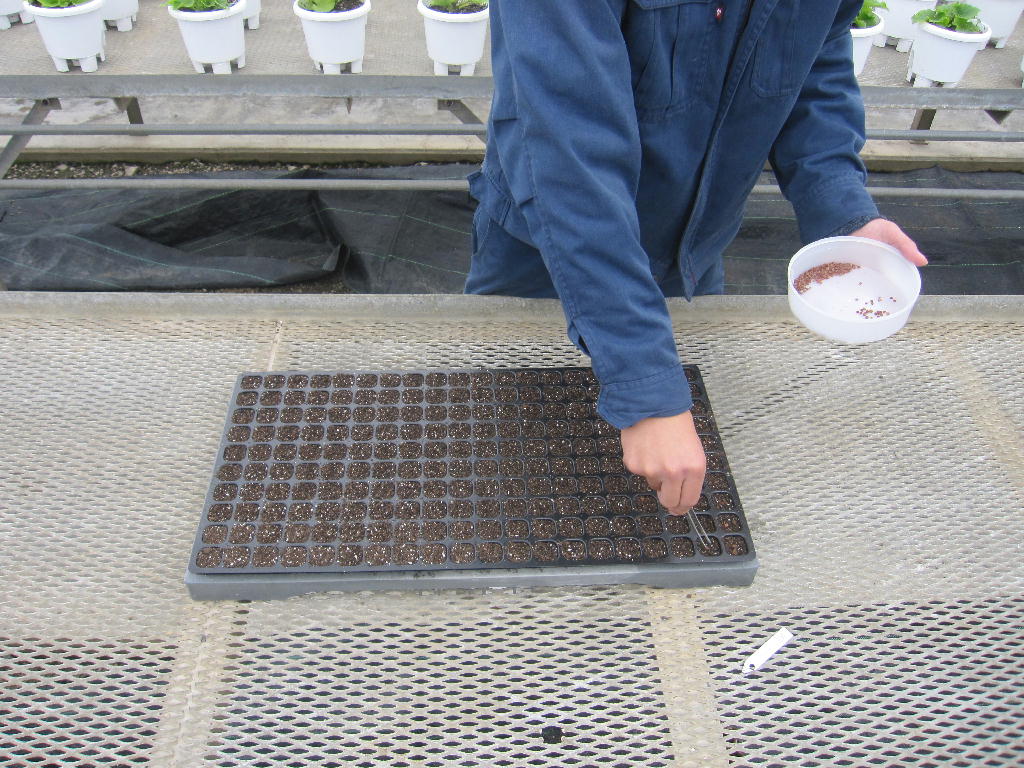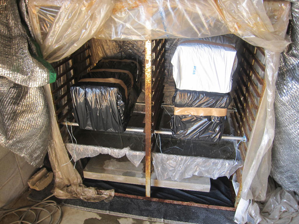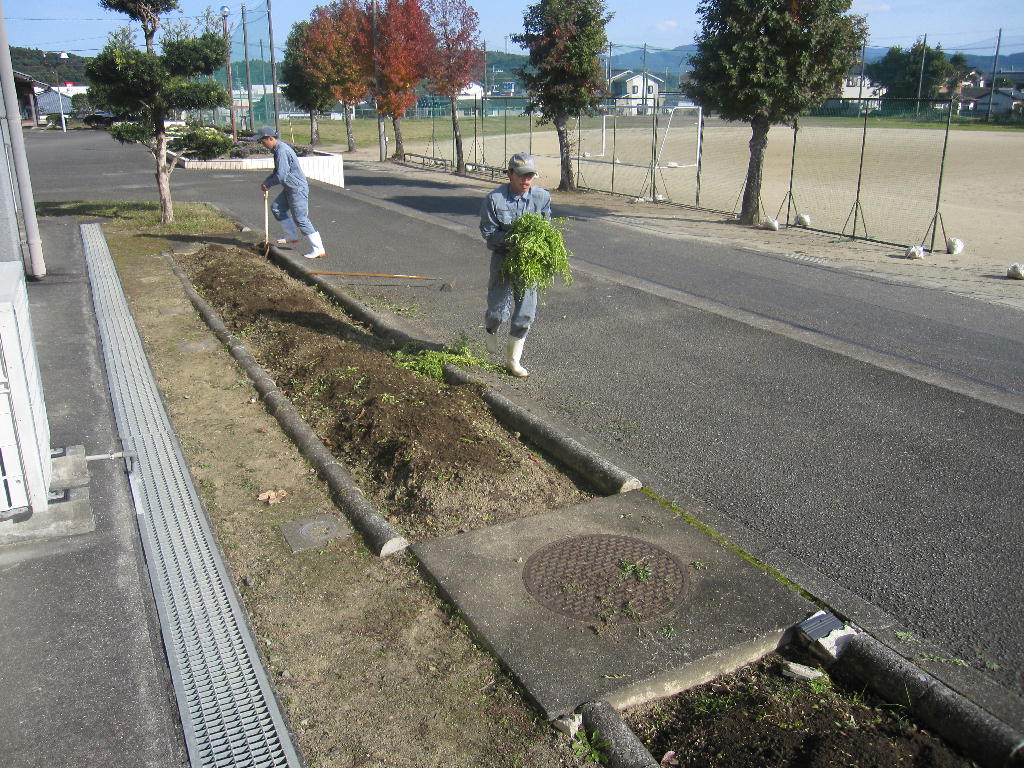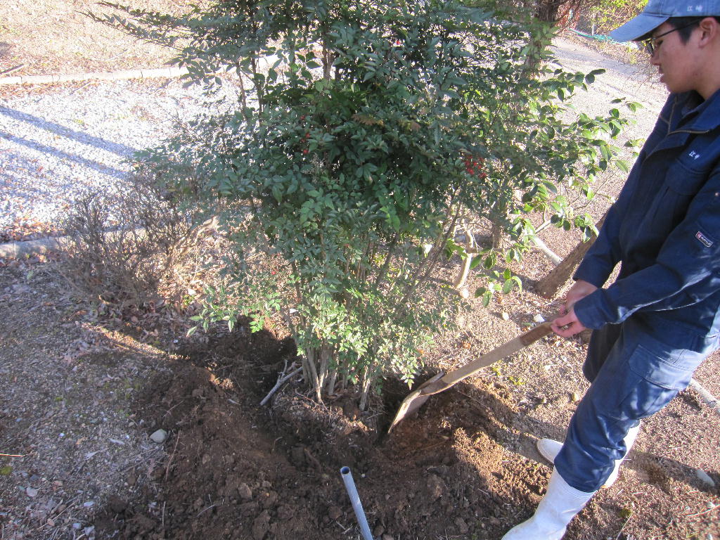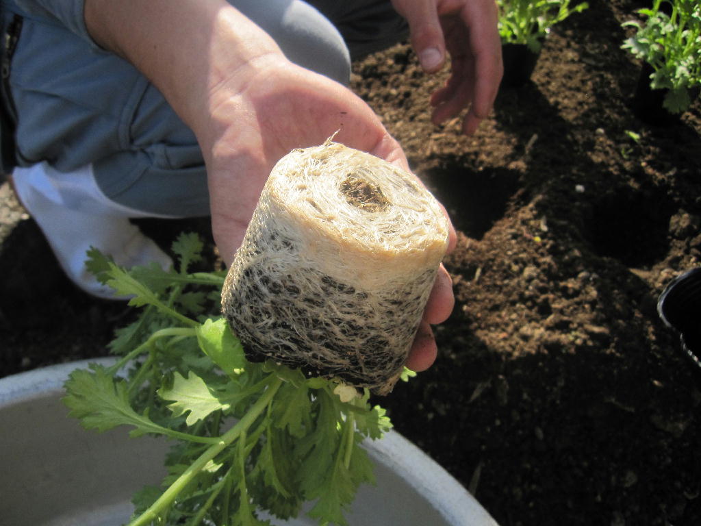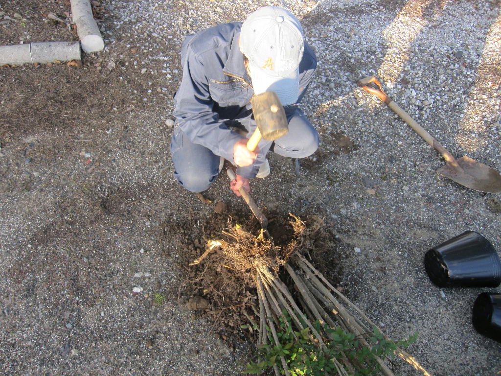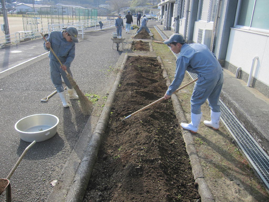 鉢もの栽培では、定植の前に土壌伝染性病害虫や雑草の種子を除去しとかないといけません。なので土壌の消毒を行います。土壌消毒には大きく分けて、熱処理と薬剤処理があり、本校では熱処理の中の蒸気消毒で土の温度が100℃で約1時間消毒した土を鉢替え用土として使用しています。