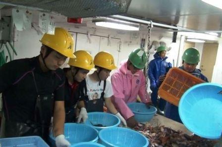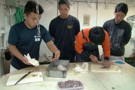 越冬場である東シナ海において底魚資源量の分布、成熟、食性等の調査を行う。航海中は航海当直、各種漁業実習をとおして船舶運航と漁業生産に関する総合的な知識と技術を習得する。