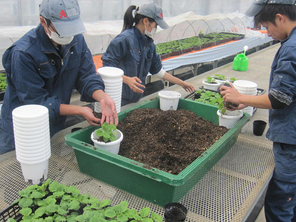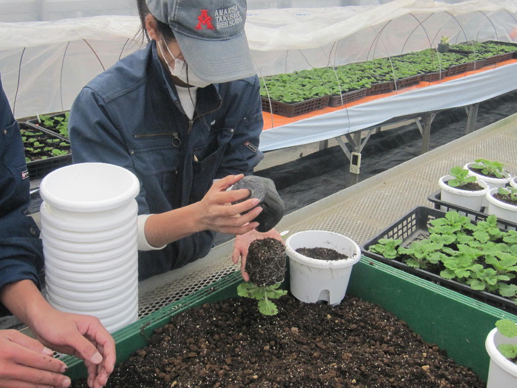 【本渡校舎】プリムラ 鉢替え② (生物生産科3年)