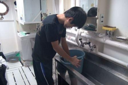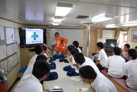 出港後、いきなりのピッチングの洗礼。ほとんどの生徒が船酔いであった。