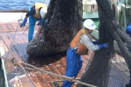 昨日はクラゲの残骸が大量に入網し、魚を捜すのに一苦労した。