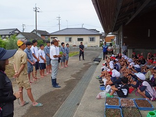 6月18日(月)に本校水田において、本渡北小学校との田植え交流学習を行いました。