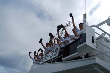 本日午前中に調査資材等の陸揚げ準備を行い、三重港前に錨泊予定