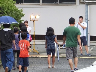ヤマハ発電機と白熱灯 一斉避難訓練で足下を照らす