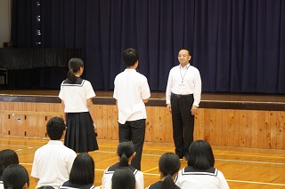 9月16日(日)より全国一斉にスタートする就職試験を前に、進路意識の高揚をさらに図るため9月14日(金)に激励式が執り行われた。決意表明では、2名の生徒が試験に挑む意気込みと、これまでの感謝を述べました。
