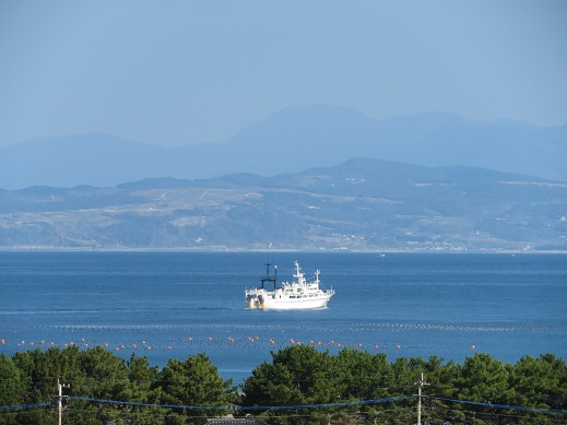 本日13時、第5代熊本丸が宮城県から富岡港に入港しました。