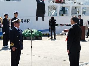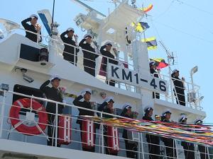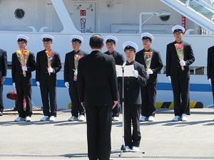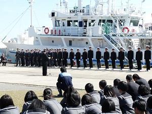 晴天に恵まれた本日、マリン校舎の一大行事である熊本丸出港式が行われました。