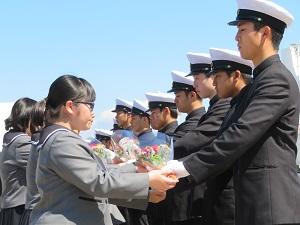 乗船する3年海洋科学科海洋航海コースの14名の生徒は、