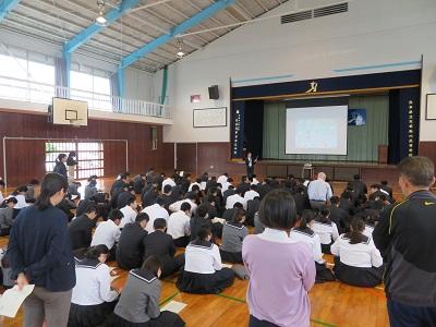 いじめ匿名連絡サイト「スクールサイン」の利用についての全校集会が行われました。