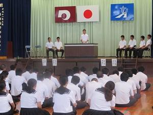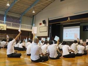 本日6限目終了後、マリン校舎体育館で野球部・カッター部の選手推戴式と主権者教育講話