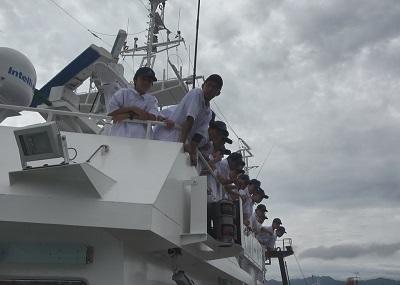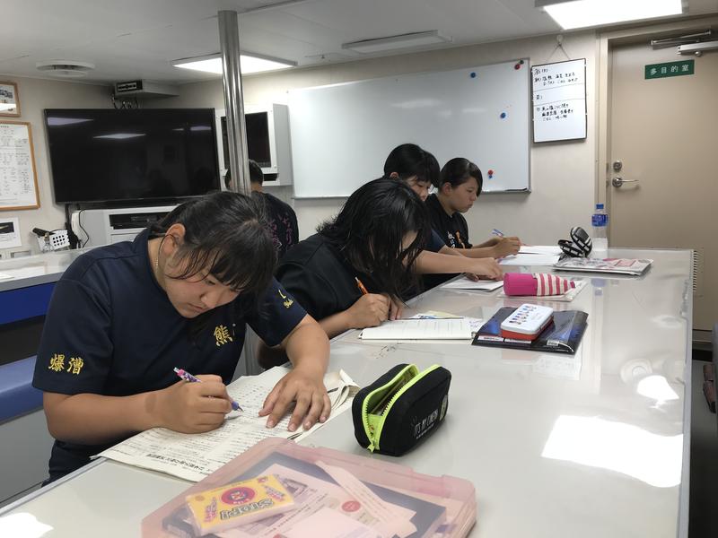 本渡校舎、マリン校舎の生徒17名は、午後5時に富岡港を出港しました。現在、河浦沖を航行中です。