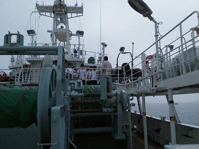 その後、自由時間になり、家族へのお土産を買う生徒もいれば、一目散に熊本丸に帰り、釣り道具を出して岸壁で釣りをする生徒もおり、さすが海洋科学科の生徒、本当に釣りが好きなんだと関心しました。