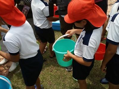 2年10名と富岡小学校5年生10名でマダイ・クルマエビ