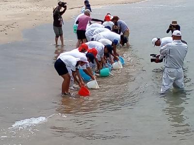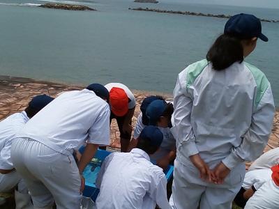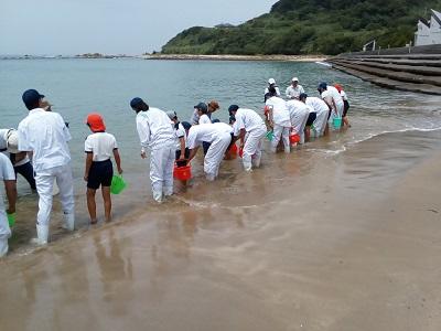7/9(火)富岡海水浴場で、本校海洋科学科栽培コース