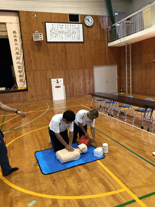 7月11日(木)1~4限目に本渡校舎1年生が応急手当及び心肺蘇生法講習会を受講しました。