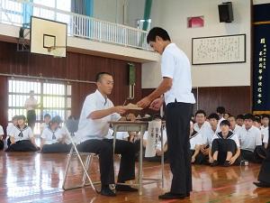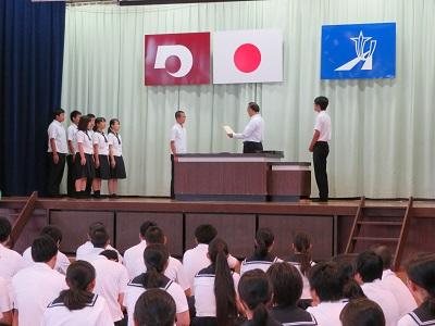まず、終業式に先立ち生徒会執行部任命式と表彰式が行われました。
