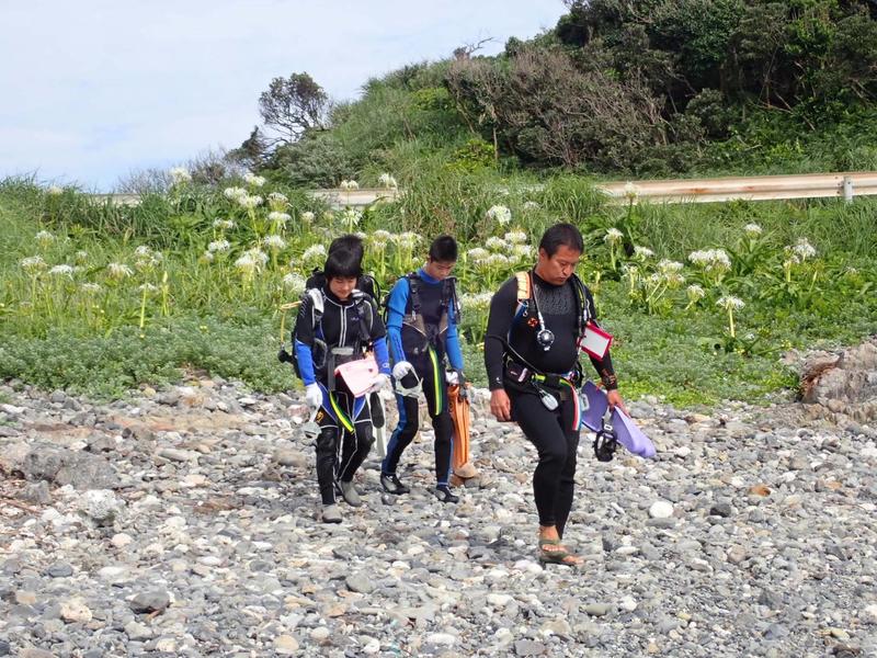 移動後は、ウエットスーツに着替えてさっそく海の中へ…