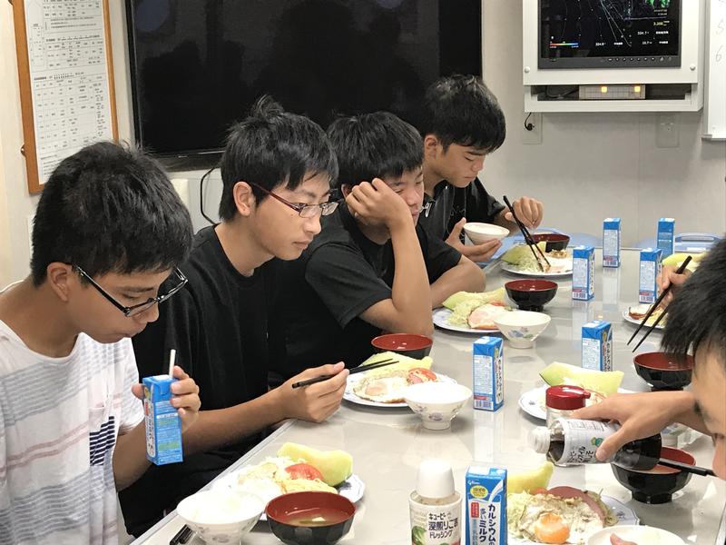 昨日のダイビングの疲れからか、ご飯を目の前に寝ている生徒もいました。