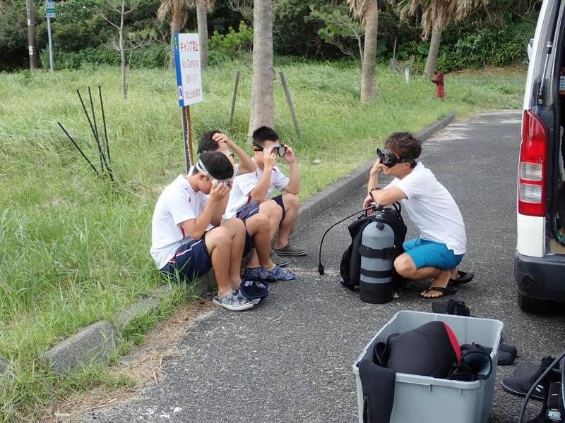 食べ終わったら、体操服に着替えダイビングを教えてくれるダイバーさんへご挨拶を行い、
