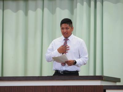 本渡校舎での親任式に引き続き、新しいALTのアラン先生にお越しいただきました。