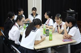 令和元年度9月6日(金)中国の高校生28名が本渡校舎を訪れ、歓迎セレモニー、昼食交流、授業体験交流、防災学習、植樹活動、部活動交流を行いました。昼食交流では、生徒会と農業クラブ役員が中国の高校生と一緒に食事をとり、翻訳アプリ使い高校生らしい会話を楽しみました。防災学習では、生徒会の発表後、ディスカッションを行い、防災意識の高揚につながりました。植樹活動では、長命で淡紅色のシダレザクラの植樹を行い、互いに環境保護の意識を養いました。終日に渡り交流を行った中国の高校生は、多くの生徒に見送られ本校を後にしました。