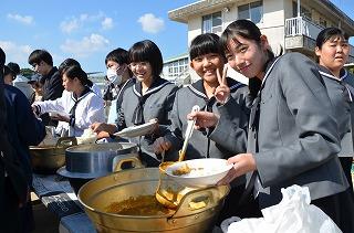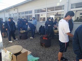 令和元年11月8日(金)天草拓心祭二日目収穫感謝祭が本渡校舎にて行われました。農産物の収穫と食に感謝し、炊き出しを行うことで防災意識を高めます。各クラスの調理班が朝からかまどで火を焚き、カレーを調理します。お米は、本渡校舎1年生全員で田植えと稲刈りを行った学校生産物の「ひのひかり」です。気持ちの良い秋晴れのなかグラウンドで実りに感謝し、カレーを味わい、お腹いっぱいになりました。午後からは、翌日の天草拓心祭三日目一般公開に向けた準備が行われました。