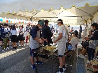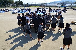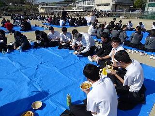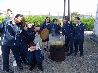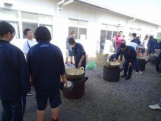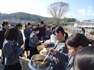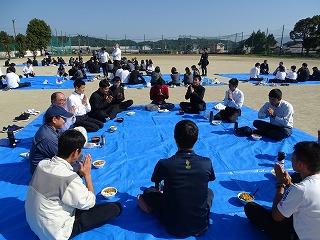 競技終了後は、育友会の皆さまからの豚汁とおにぎりの炊き出しを、おいしくいただき