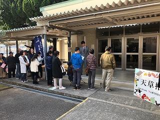 令和元年11月9日(土)天草拓心祭一般公開がテーマ『伝統の継承』~感動のバトンをつなげ~のもと、本渡校舎にて行われました。展示作品8団体、販売8店舗、食品バザー9店舗、その他企画発表6団体の計31団体が校舎内外にならびました。9時30分から開始された一般販売では、メロンやシクラメン、食券をもとめるお客様で長蛇の列ができました。多くの地域のお客様はもちろんのこと、遠方からもお越しいただき誠にありがとうございました。来客数は、1,030名と、9時30分から13時00分まで、販売時間いっぱいの大盛況となりました。
