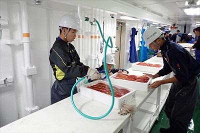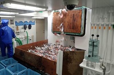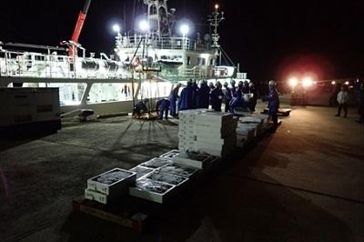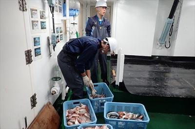 本日、漁獲物整理と入港準備を行い、明日予