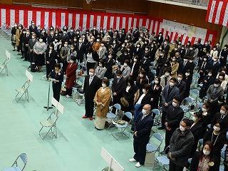 本渡校舎での卒業証書授与式の後、マリン校舎体育館で卒業を祝う会が催されました。