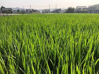 お盆も終わり、残暑が厳しく連日暑い日が続きますが、水田では、イネが出穂期をむかえ、稲穂が出始めました。