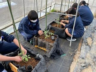 【本渡校舎】A科1年生ミニトマトの植付け