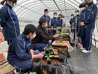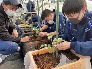 【本渡校舎】A科1年生ミニトマトの植付け