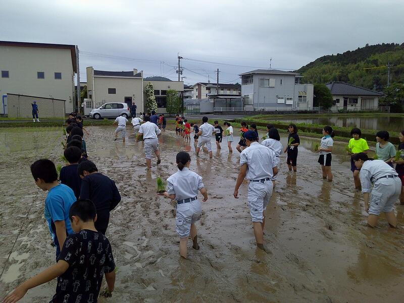 6月21日(水)に毎年恒例となっている本渡北小学校5年生田植え体験交流学習を行いました。田植えを通して、地元の小学生と交流を深めることにより、他人を思いやる心を育て、農業の魅力を伝えることのできる人材を育成するためにこの交流学習を行っています。