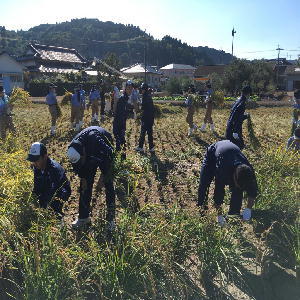 商業科と言っても、簿記・会計やパソコンの実習ばかりではありません。実際に鎌をもって、自分たちの力で稲を刈り、そして収穫感謝祭で、美味しくお米をいただきます。