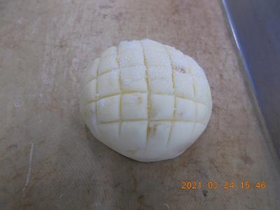 晩柑メロンパンもクッキー生地がべたついて難しいですが、頑張っていました。