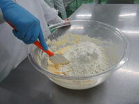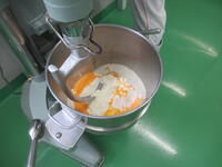 今回の実習は、ベーキングパウダー(膨張剤)を使った、パウンドケーキ製造を行いました。