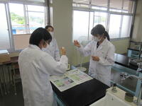 1年生の食品化学の授業では、1学期に食品化学とは何なのかを座学で学び、実験操作を体験しました。
