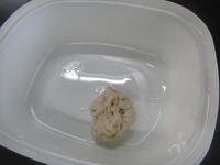 弾力が出て、伸びるようになったら水につけ、水中でもみ洗いをします。