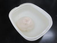 弾力が出て、伸びるようになったら水につけ、水中でもみ洗いをします。