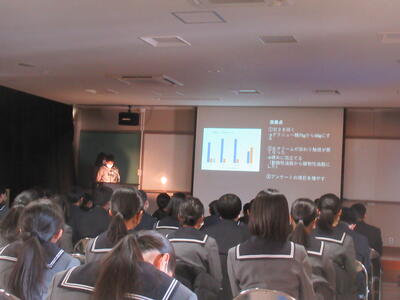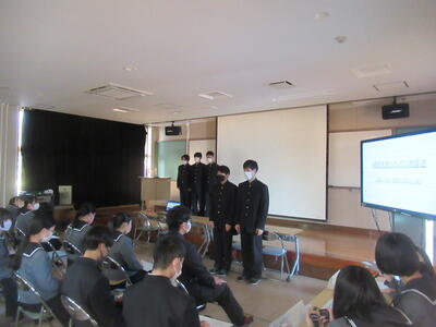 課題研究の授業では、各班食品科学に関する課題を設定し、解決を図るため、食品科学科で学んだ専門知識や技術を生かし、問題解決の能力や自発的、創造的な学習を行ってきました。