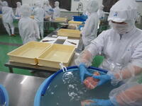 《ロース肉洗い》         《ロース肉乾燥中》         《カット》