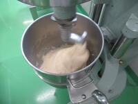 日頃の実習ではミキサーで生地作りを行っていますが、今回は自分たちの手で行いました。