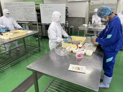 食品科学科の2・3年生に教えてもらいながら、一緒に製造していきます。