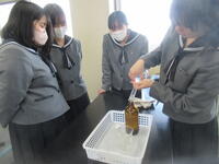 中和滴定を行うのは、2回目です。「微紅色」を出すのに苦戦している生徒もいましたが、集中して実験に取り組んでいました。