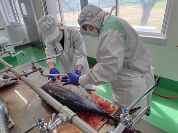 2日間にわたってマグロの処理から缶詰にするまでの工程を行いました。